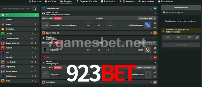 O 923Bet oferece uma grande seleção de opções de apostas em e-sports com probabilidades competitivas